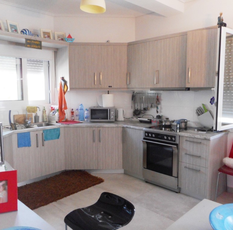 Πωλείται εξαιρετικό οροφοδιαμέρισμα 106,5 τ.μ., το οποίο καταλαμβάνει τον όροφο καλαίσθητης διώροφης μονοκατοικίας. Το ακίνητο διαθέτει τρία ευρύχωρα υπνοδωμάτια, λειτουργική κουζίνα, άνετο σαλόνι, ένα πλήρες μπάνιο και ένα WC, προσφέροντας ιδανική διαρρύθμιση για άνετη και ποιοτική διαβίωση. Οι μεγάλες βεράντες χαρίζουν φωτεινότητα και αίσθηση ελευθερίας, ενώ η ύπαρξη ιδιωτικού πάρκινγκ εξασφαλίζει πρακτικότητα και ευκολία. Το διαμέρισμα διαθέτει ατομική θέρμανση, αποθήκη για πρόσθετο χώρο οργάνωσης, καθώς και κουφώματα αλουμινίου με σίτες που συνδυάζουν ανθεκτικότητα και άνεση. Μια πρόταση που ξεχωρίζει για τη λειτουργικότητα, την ποιότητα κατασκευής και την αίσθηση οικιακής θαλπωρής που αποπνέει.