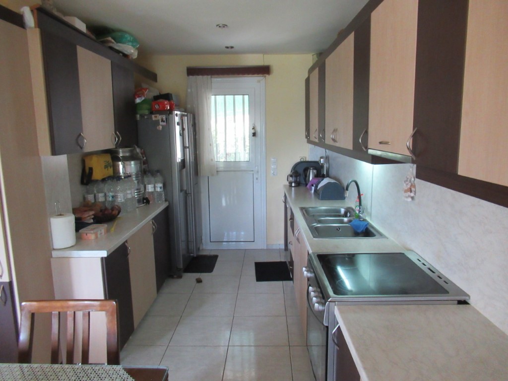 Μονοκατοικία 135 τμ σε οικόπεδο με εμβαδό 500 τμ. Αποτελείται από ένα υπόγειο και ένα υπεριψωμένο ισόγειο. Το υπεριψωμένο ισόγειο εμβαδού 100 τμ διαθέτει κουζίνα ενιαία με καθιστικό, δύο υπνοδωμάτια και ένα μπάνιο ενώ στο υπόγειο με εμβαδό 35 τμ βρίσκεται ένας ενιαίος χώρος και ένα W. C. Επίσης διαθέτει κήπο,χώρο στάθμευσης και BBQ.