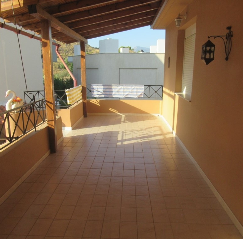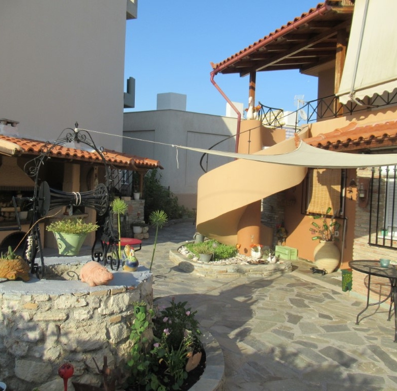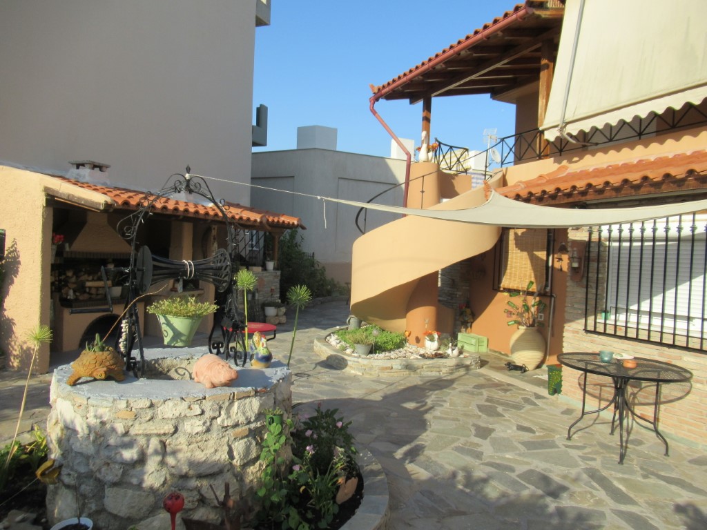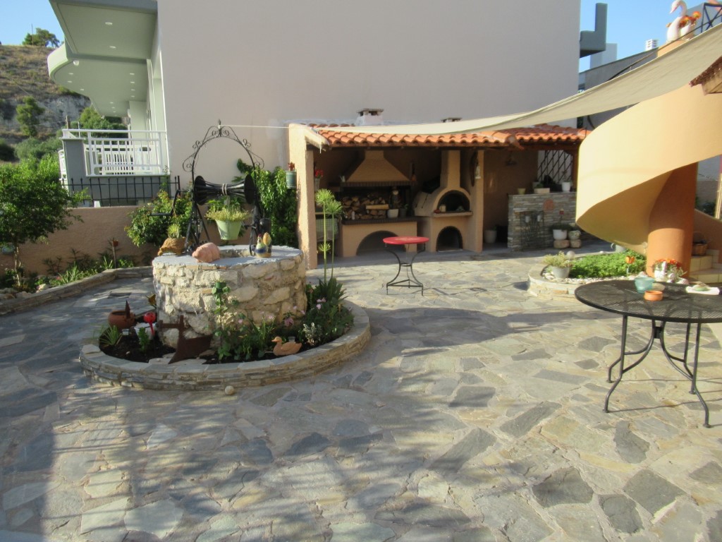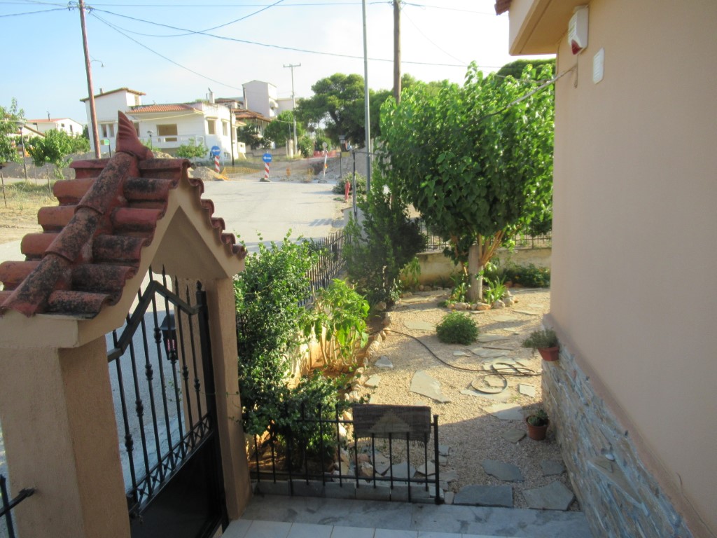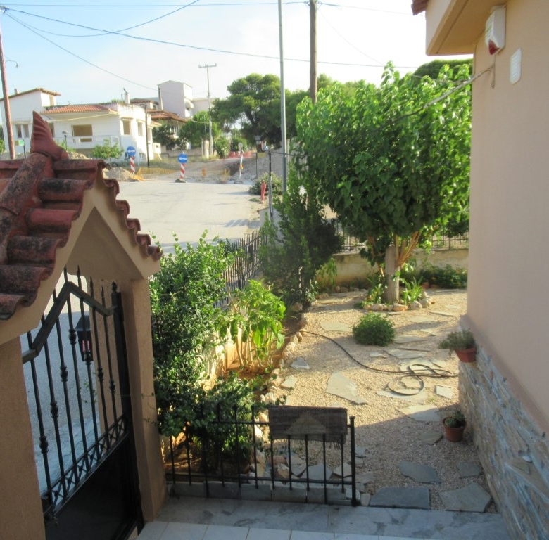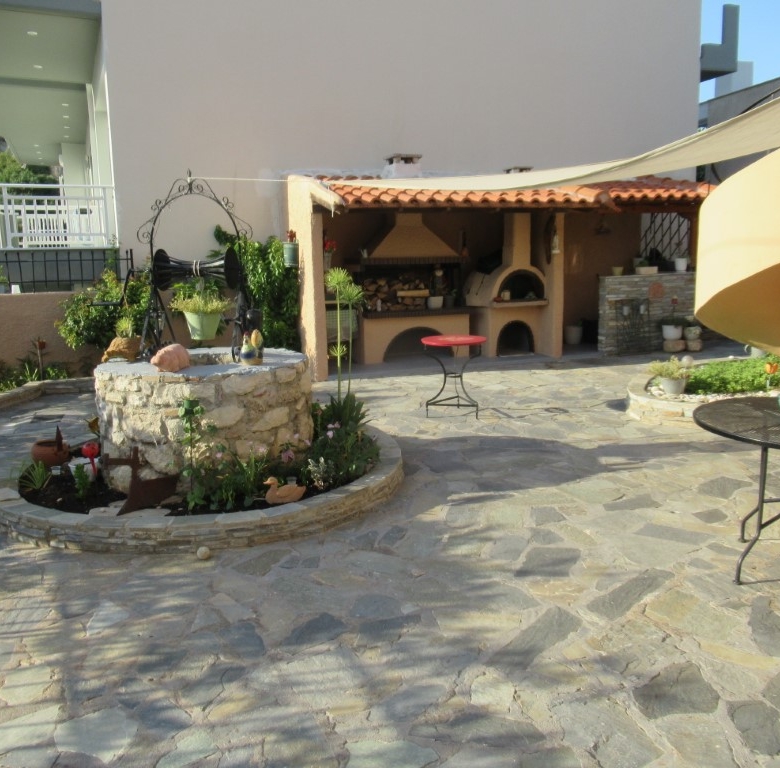 Ο εξωτερικός χώρος συμπληρώνεται από έναν όμορφα διαμορφωμένο κήπο, μεγάλες βεράντες με τέντες για προστασία και ιδιωτικότητα, καθώς και χτιστό BBQ, ιδανικό για στιγμές χαλάρωσης και κοινωνικών συναθροίσεων, σε ένα ήρεμο και φιλόξενο περιβάλλον.