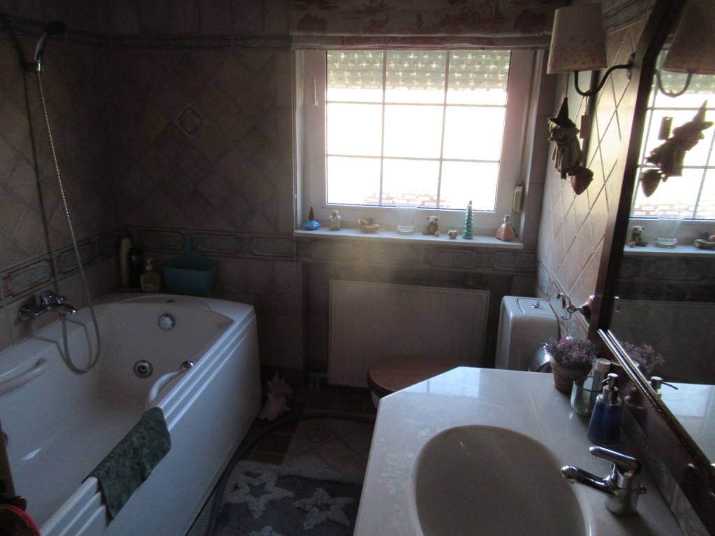 Ο πρώτος όροφος, συνολικής επιφάνειας 140 τ.μ., εντυπωσιάζει με τη διαρρύθμισή του και την άνεση που προσφέρει. Περιλαμβάνει τραπεζαρία, ξεχωριστή κουζίνα, ευρύχωρο σαλόνι, πολυτελές μπάνιο με jacuzzi, WC , καθώς και δύο άνετα υπνοδωμάτια. Η μονοκατοικία διαθέτει αυτόνομη θέρμανση με καλοριφέρ, ηλιακό θερμοσίφωνα, κλιματιστικά (A/C), κουφώματα αλουμινίου με διπλά τζάμια, δάπεδα από πλακάκι στους κοινόχρηστους χώρους και ξύλο στα υπνοδωμάτια, προσφέροντας υψηλή αισθητική και θερμική άνεση.