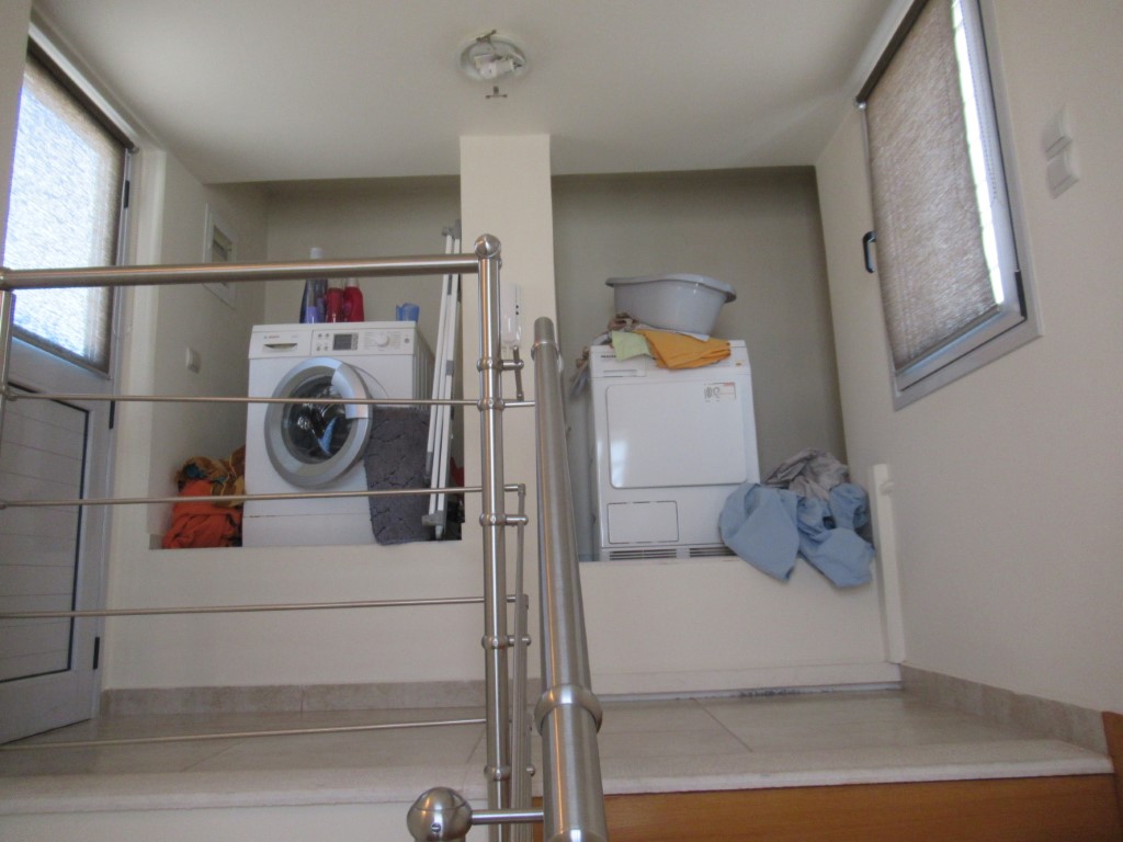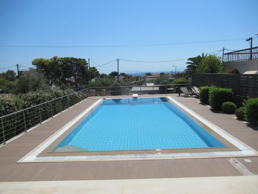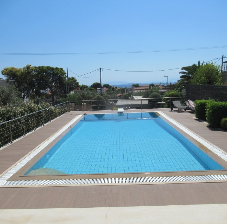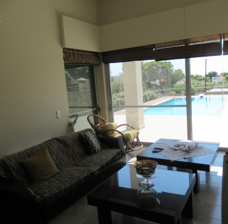 Η εσωτερική διακόσμηση χαρακτηρίζεται από την εναλλαγή ξύλου και πλακιδίου στα δάπεδα, ενώ οι σύγχρονες παροχές —κεντρική θέρμανση, κλιματισμός, προηγμένος εξοπλισμός— προσδίδουν άνεση σε κάθε εποχή. Στον εξωτερικό χώρο, η πισίνα ενσωματώνεται αρμονικά στο φυσικό τοπίο, πλαισιωμένη από καταπράσινο κήπο και ειδικά διαμορφωμένους χώρους χαλάρωσης με BBQ, ενώ η γεώτρηση ενισχύει την αυτονομία του ακινήτου.