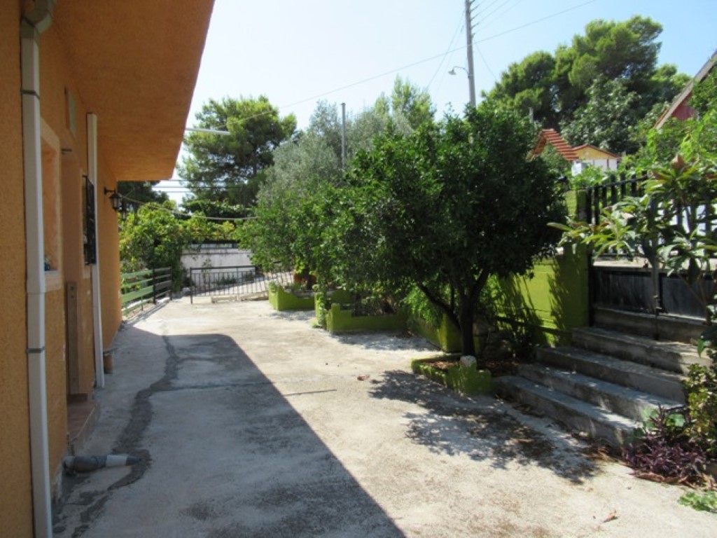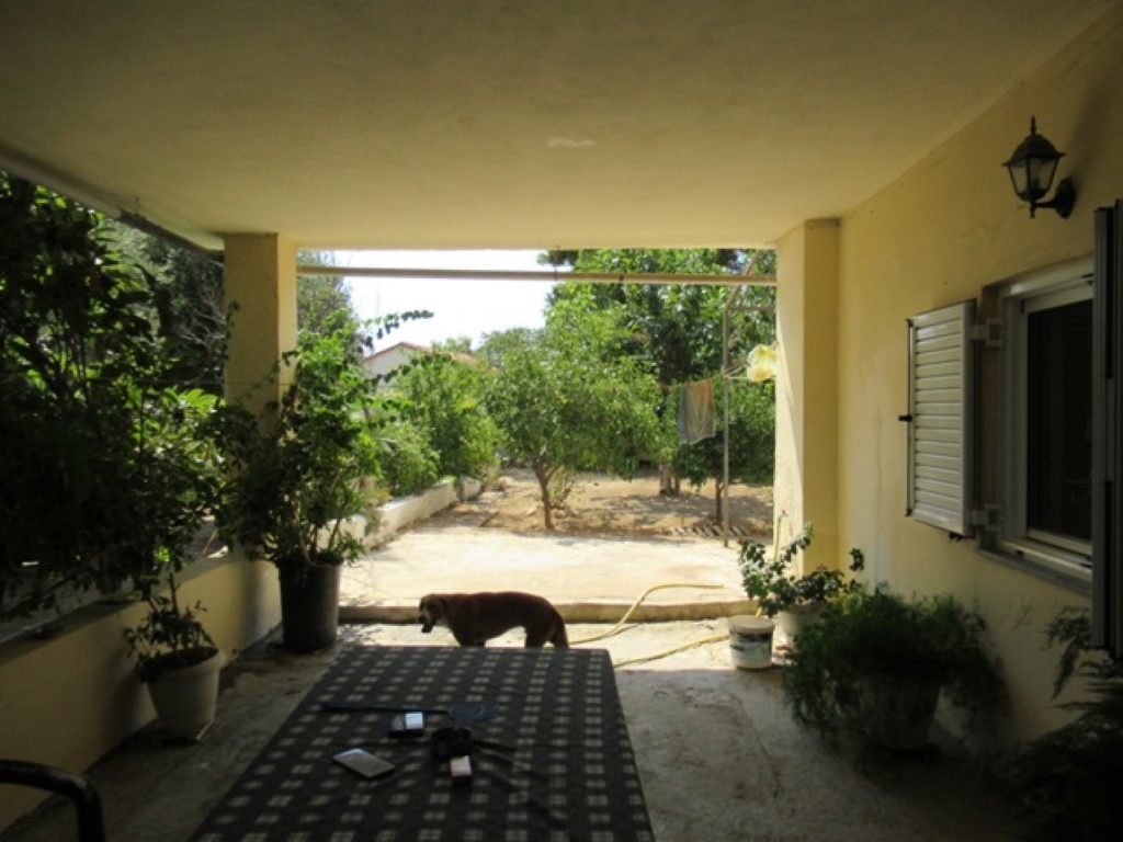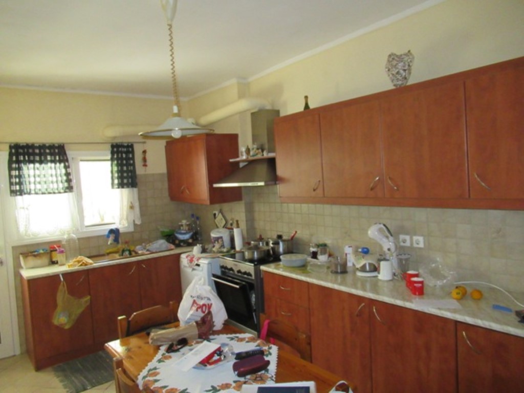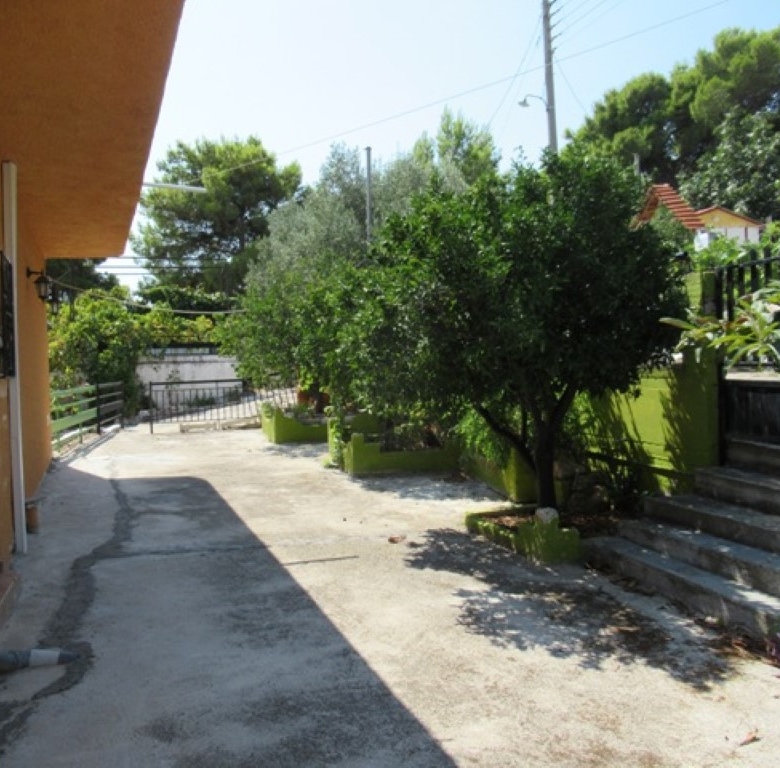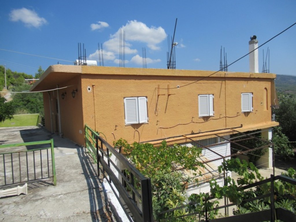 Πρόκειται για μια διώροφη μονοκατοικία, συνολικής επιφάνειας 340 τ. μ., χτισμένη το 1983 σε οικόπεδο 850 τ. μ., σε απόσταση περίπου 2 , 5 χλμ. από τη θάλασσα και το κέντρο της πόλης. Το ισόγειο των 170 τ. μ. περιλαμβάνει ενιαία κουζίνα και καθιστικό, δύο υπνοδωμάτια, ένα πλήρες μπάνιο, καθώς και ένα επιπλέον ημιτελές δωμάτιο, ιδανικό για διαμόρφωση σύμφωνα με τις ανάγκες του ιδιοκτήτη. Είναι εξοπλισμένο με κουφώματα αλουμινίου με σίτες, δάπεδα με πλακάκια, κεντρική θέρμανση και περιβάλλεται από έναν όμορφο κήπο, προσφέροντας άνεση και ηρεμία. Στον πρώτο όροφο, επίσης 170 τ. μ., βρίσκονται δύο διαμερίσματα